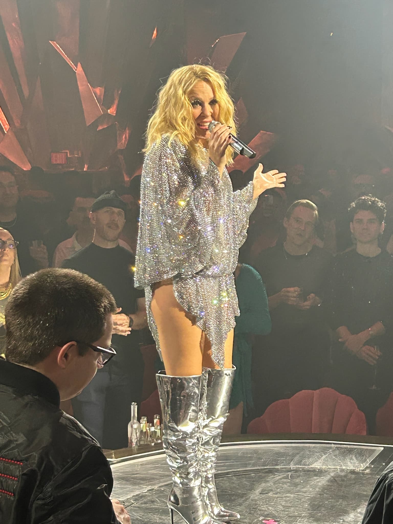 I am so happy I got to attend the final weekend of Kylie Minogue's Las Vegas residency at Voltaire in The Venetian. It was everything a Kylie fan could dream of and more! After a nightmarish ticket purchase last summer, I finally found myself sitting at one of the best tables at Voltaire, sipping Kylie's non-alcoholic rosé and munching on ice cream and caviar, eagerly waiting for the pop icon to grace the stage.